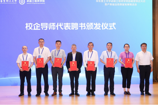 在校企导师代表聘书颁发仪式上,胡钦晓为陈德院士、中国石油化工集团有限公司张斌、中国医药工业研究总院倪峰、中国航空发动机集团有限公司曹明,bevictor伟德化工公司王辅臣教授、机动公司张显程教授、信息公司和望利教授等7位校企导师代表颁发聘书。